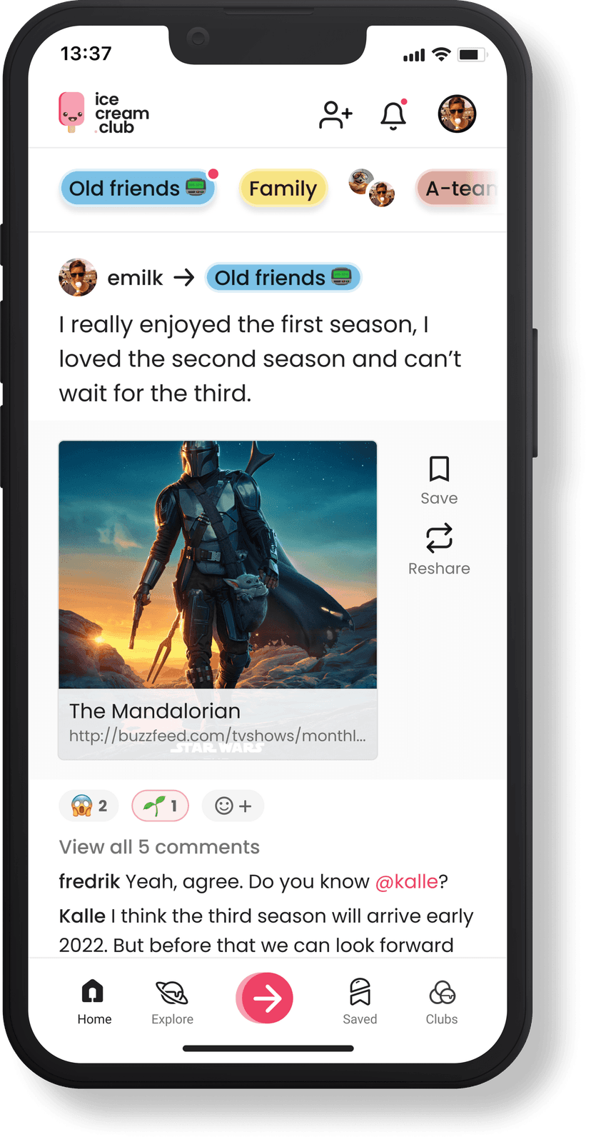 The algos don't work, the highest rating is not enough. Use your friends as a filter, what they are enjoying is more relevant. Share, discover, discuss and experience great things together with friends.